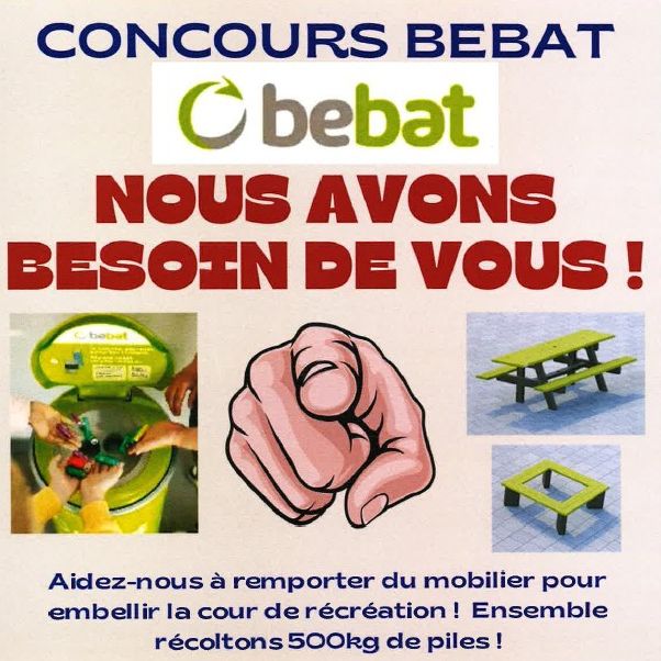 Récoltons ensemble 500 kilos de piles avant le 5 décembre afin de remporter du mobilier pour notre cour de récré!!! Nous avons besoin de vous!